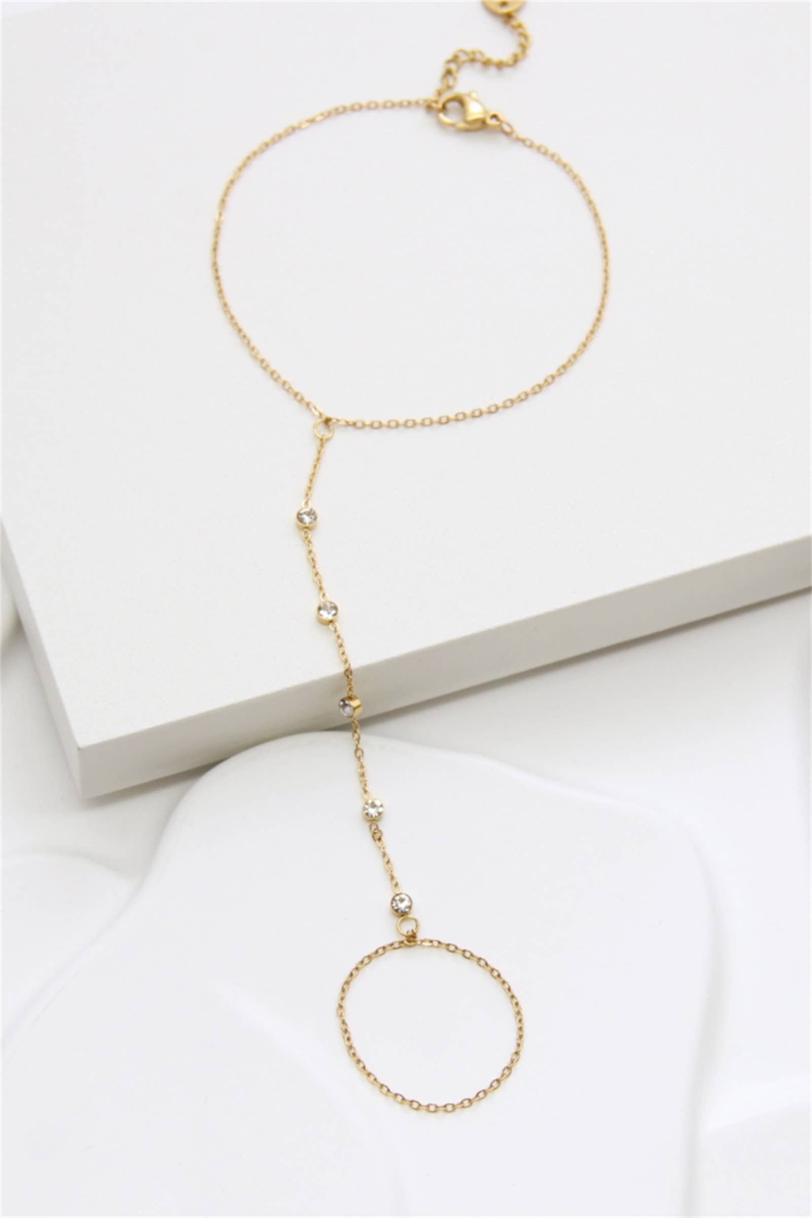 Sublimez vos gestes avec ce délicat bracelet de main doré en acier inoxydable. Raffiné et tendance, il relie le poignet à l’anneau de doigt par une fine chaîne ornée de petits strass lumineux, pour un rendu chic et élégant.