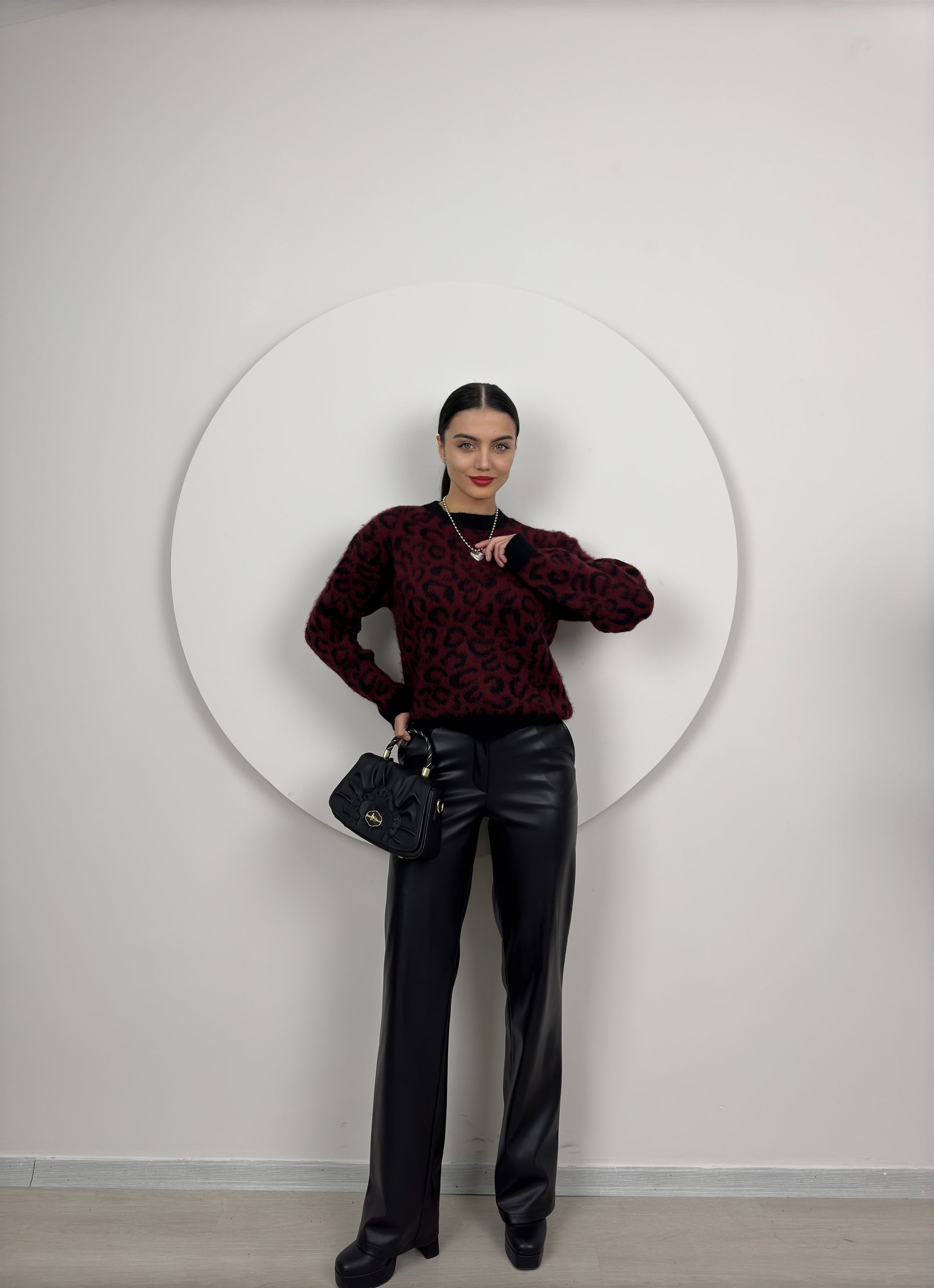 Pull Leopard Bordeaux & Noir – Ultra Doux, Taille Unique
