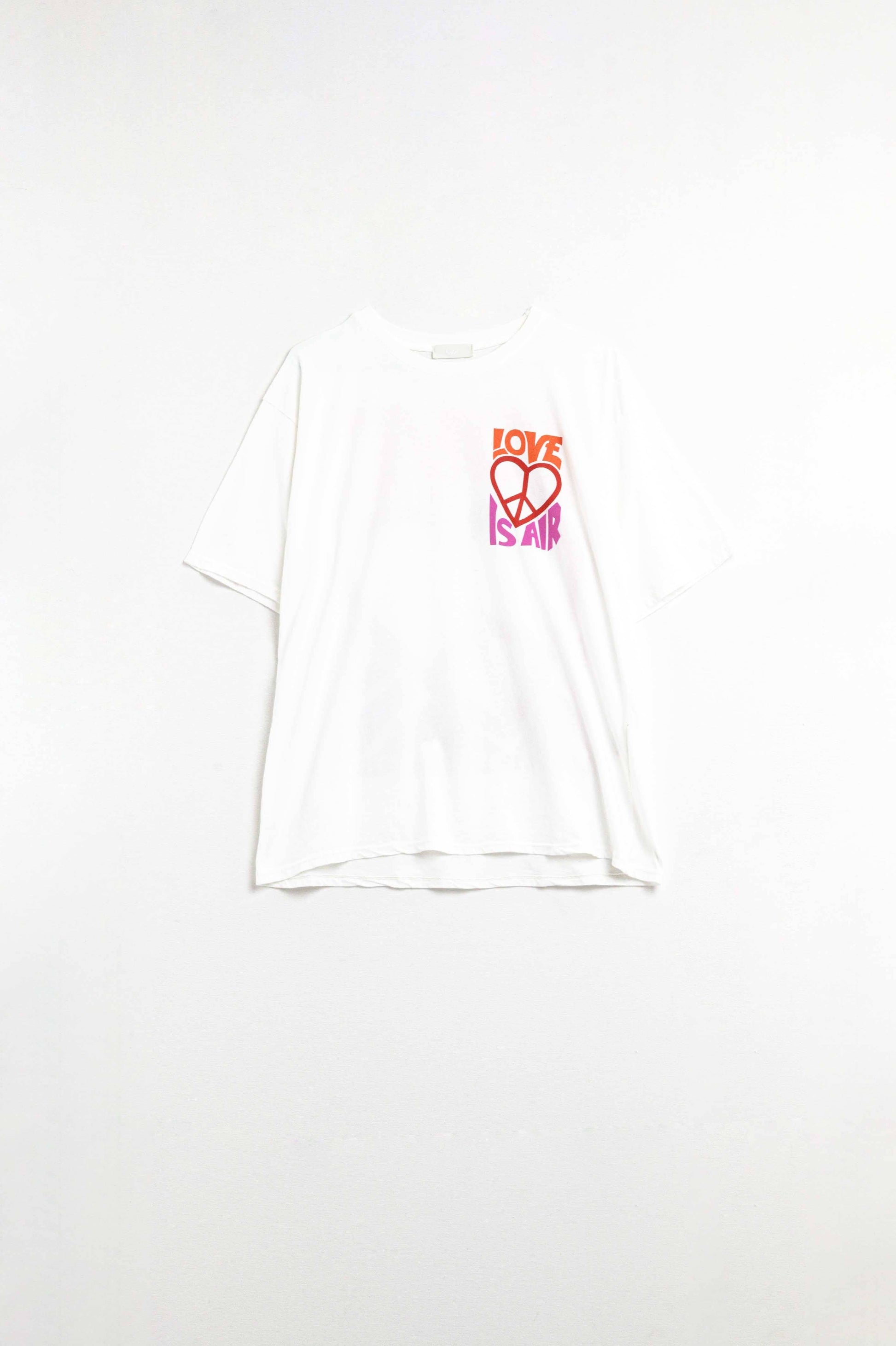 Un T-shirt blanc minimaliste au message fort : "Love is Air" avec un cœur Peace & Love. Une pièce douce, engagée et pleine de style.
