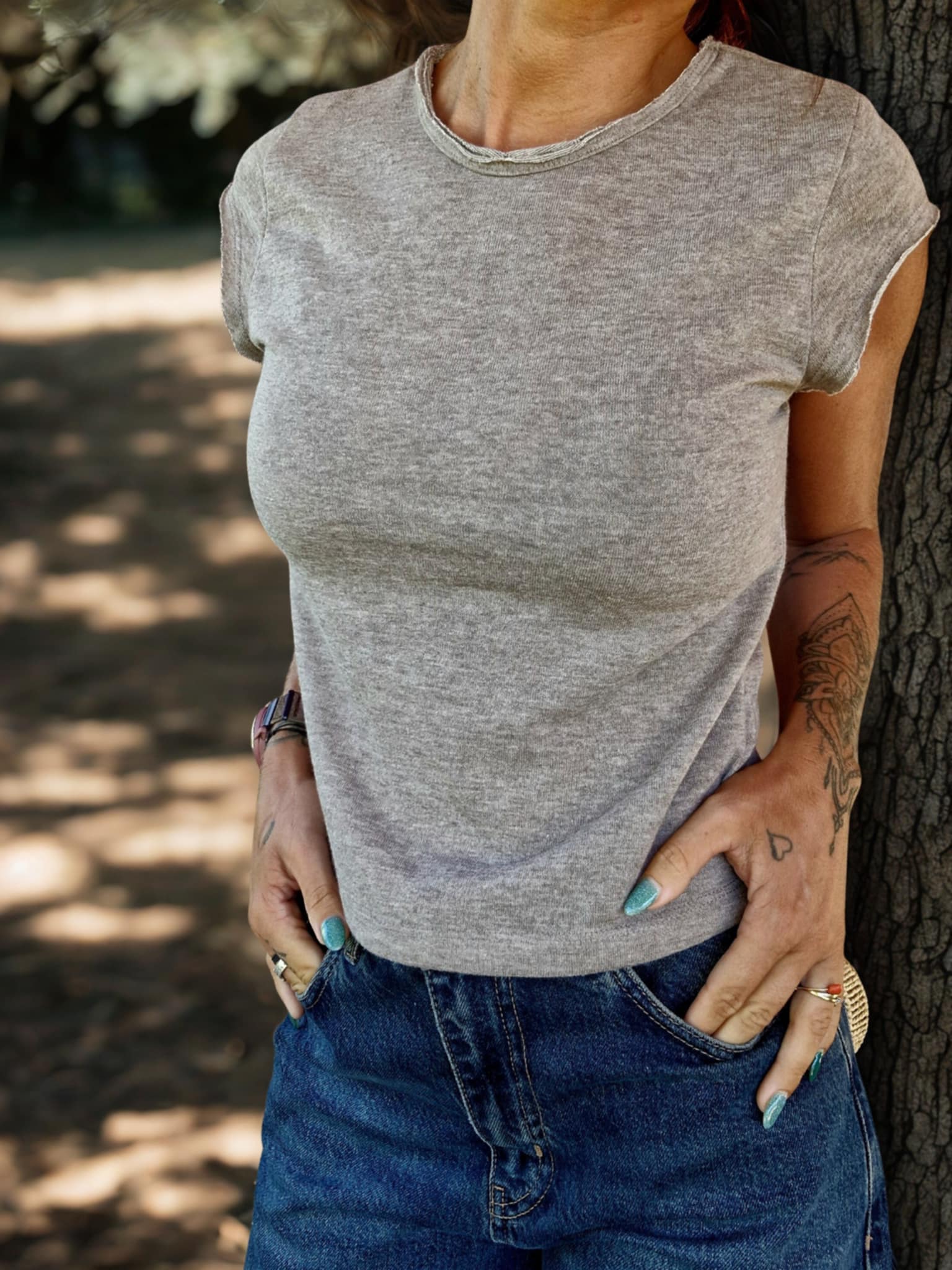 Un t-shirt basique indispensable pour toutes vos tenues. Polyvalent et élégant, il se porte seul ou en superposition pour un style décontracté ou chic.