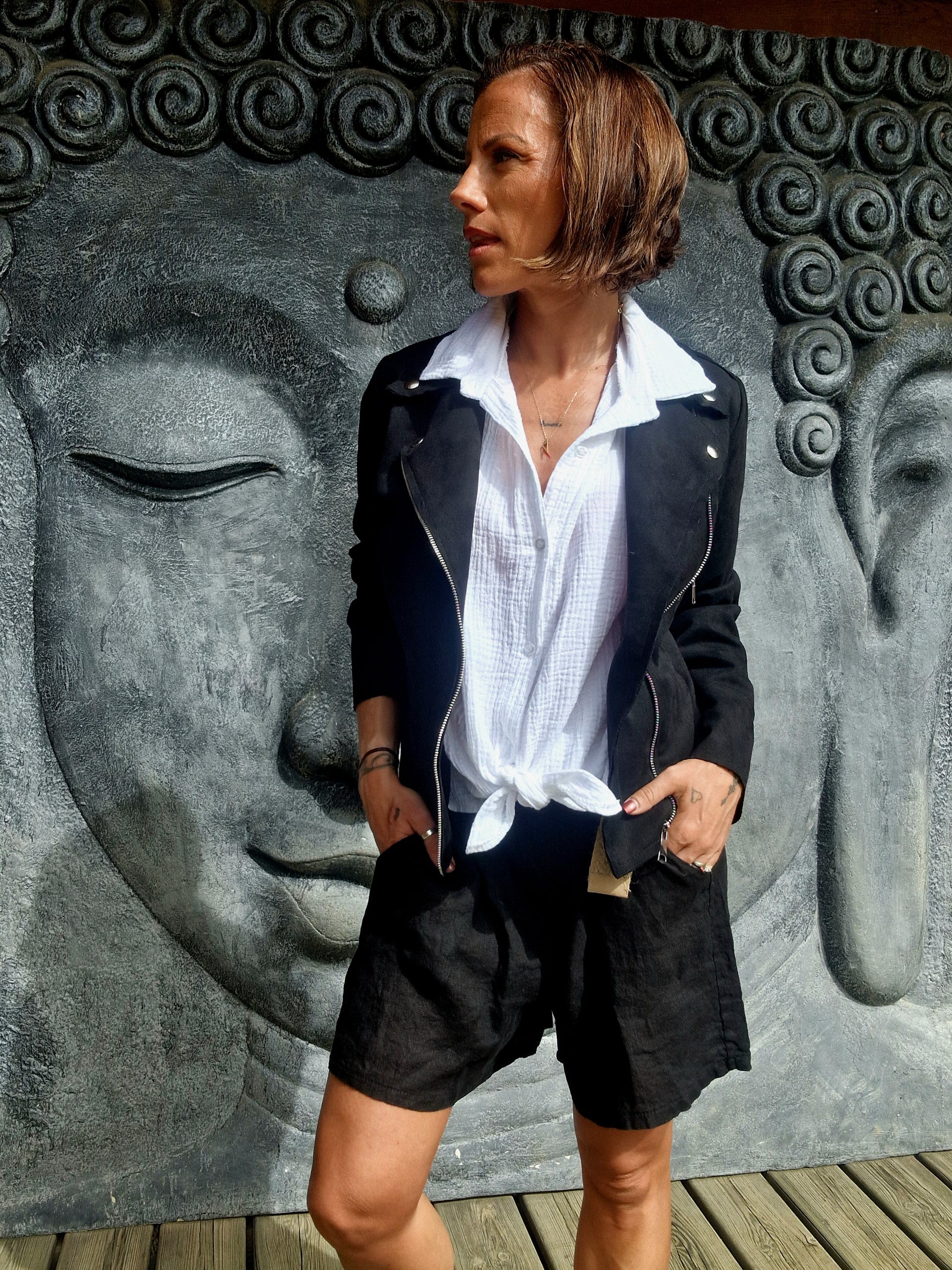 Craquez pour notre veste IPA — un indispensable au style chic et décontracté. Sa matière effet suédine ultra douce et sa coupe cintrée non doublée apportent une touche élégante à toutes vos tenues. Parfaite avec un jean ou une robe, elle deviendra votre alliée de mi-saison